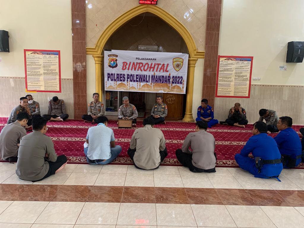 Kegiatan pembinaan rohani dan mental bagi personil yang beragama islam dilaksanakan di Masjid Al-Hisbah Polres Polman dan tampak diikuti para Kabag, Kasat, para perwira, staf, serta seluruh personil Polres Polman